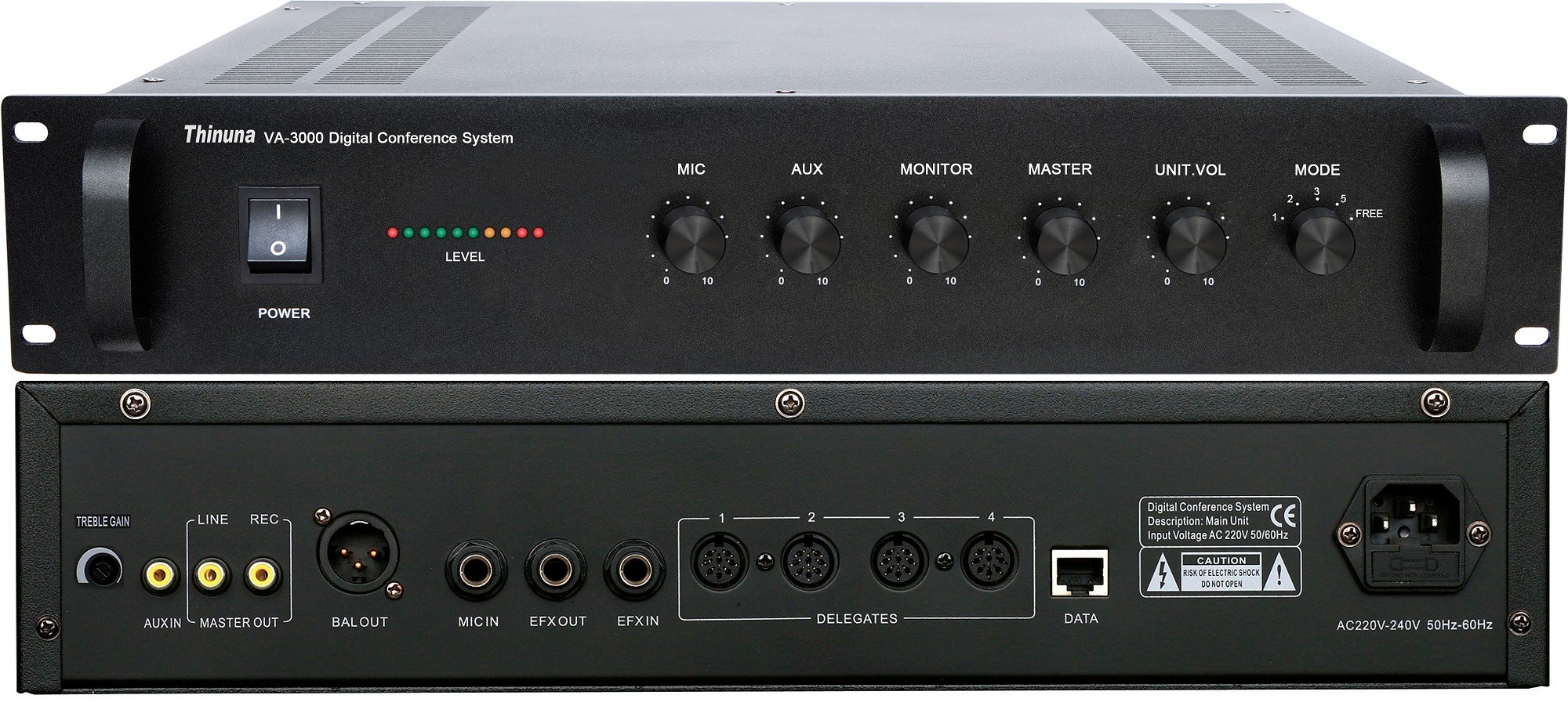 具備四組8P-DIN話筒連接接口,可以支持16×4組=64個發(fā)言單元