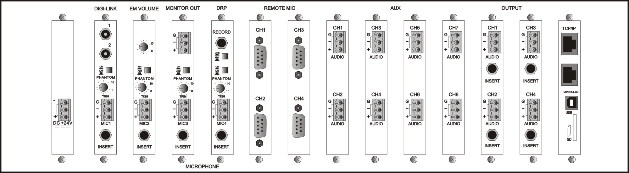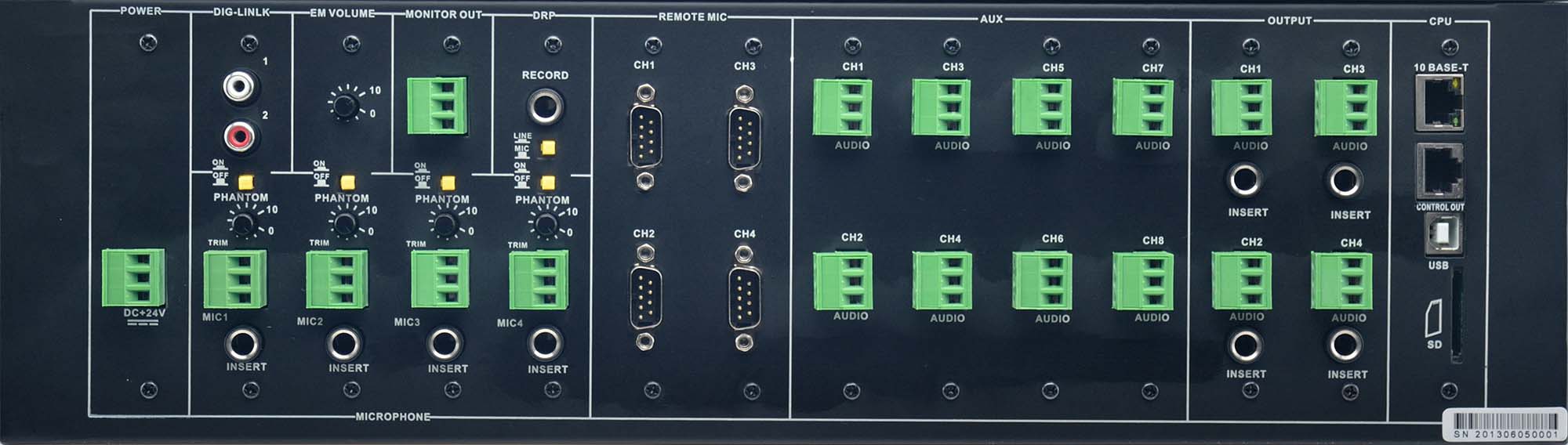 支持4個(gè)普通話筒輸入(帶幻象電源,輸入微調(diào),insert接口)