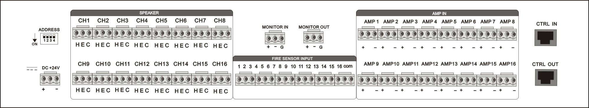 喇叭分區(qū)輸出:16通道,最大7A/700W,每通道