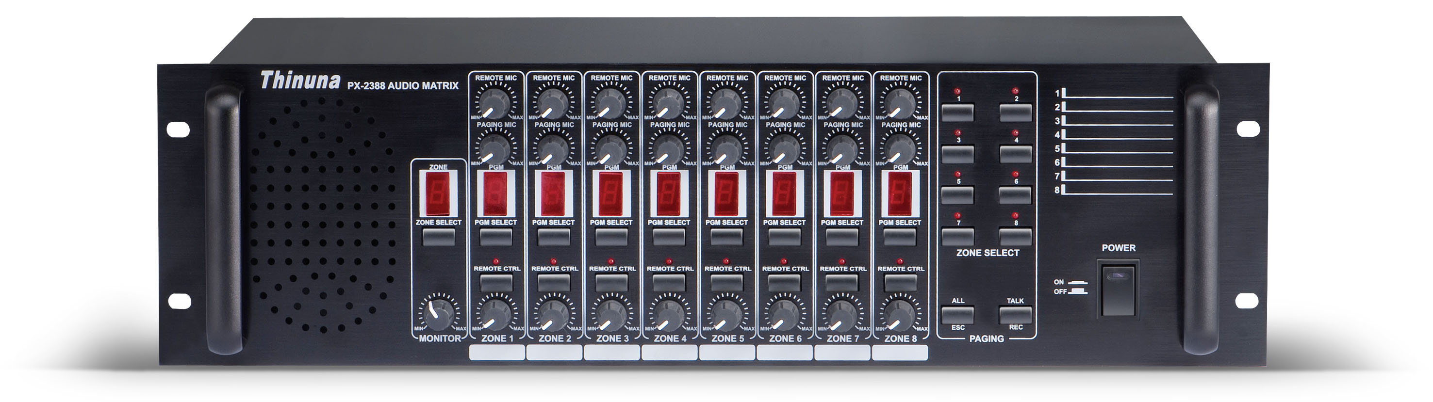 內(nèi)置8分區(qū)輸出監(jiān)聽喇叭,監(jiān)聽音量可調