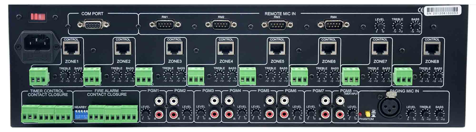 最大4支8分區(qū)遙控話筒RM-2088輸入,COM通訊端口通用接口