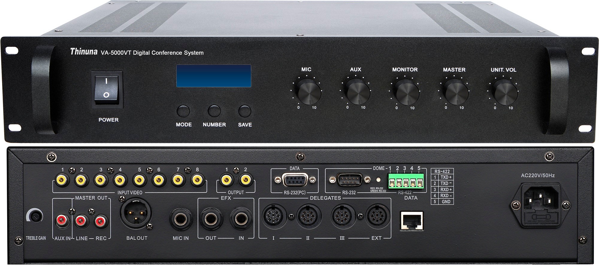 本系統(tǒng)集討論會議,視像追蹤功能于一體,配合帶視像功能發(fā)言單元可實現(xiàn)視像跟蹤功能,手拉手連線方式,高清晰度,高保真音質(zhì)輸出,發(fā)言單元配置高保真揚聲器。既可接入電腦,由操作員在相應(yīng)的軟件幫助下輕松自如地對會場進行控制,也可以脫離電腦使用。包括攝像機預(yù)設(shè)位置設(shè)定,話筒管理等。視像追蹤可以全自動進行,也可以人工輔助控制。系統(tǒng)主機帶反饋抑制功能,有效防止嘯叫現(xiàn)象??膳浜贤晜髯g及紅外線發(fā)射主機VA-6912可實現(xiàn)紅外線同聲傳譯功能。