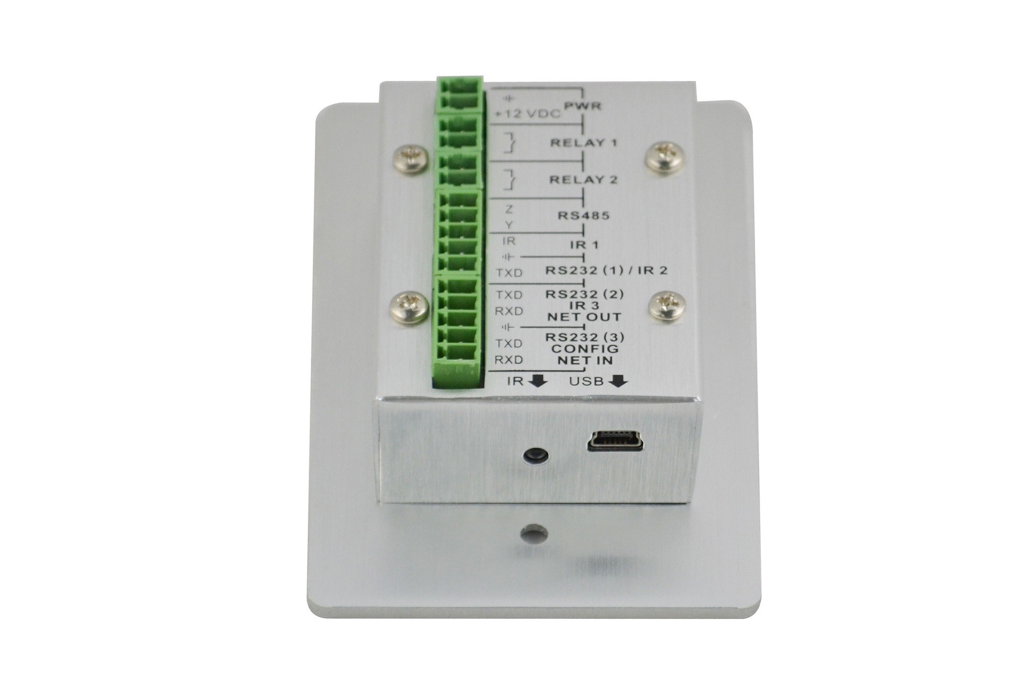SSL-W8PRO是一款可對(duì)外圍設(shè)備進(jìn)行編程控制的系統(tǒng)。可編程控制面板由三個(gè)RS232、一個(gè)RS485端口、三個(gè)紅外發(fā)射端口、兩個(gè)繼電器控制端口以及一個(gè)微型USB端口組成的可編程控制系統(tǒng),其中,RS232(1)和 IR2共用一個(gè)端口,不能同時(shí)使用這兩個(gè)端口;RS232(2)與 IR3共用一個(gè)端口,不能同時(shí)使用這兩個(gè)端口。每個(gè)按鍵都可編程控制,按鍵與按鍵之間可以相互影響,也可獨(dú)立使用。