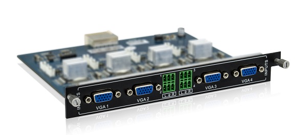 XTP-VGA-4IN是一款4路帶雙聲道立體聲音頻的VGA信號輸入卡,輸入信號可倍線變成分辨率為1080P或者1920x1200輸出,并且兼容C-video, YPbPr 和 S-video格式的信號。