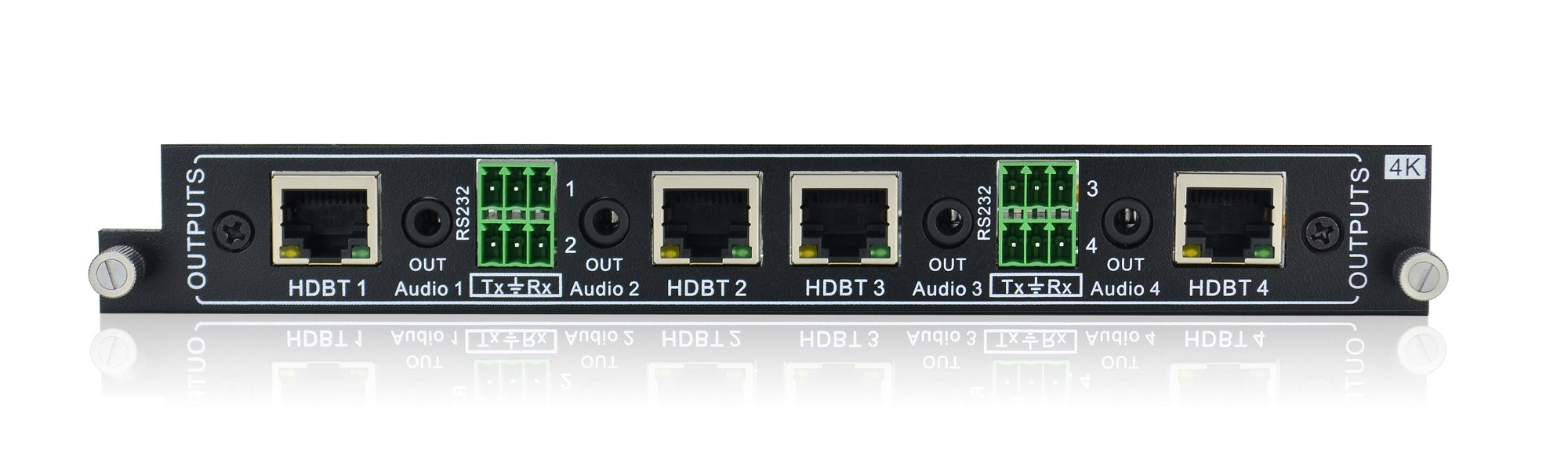 XTP-4KBT-4OUT是一款HDBT (雙絞線(xiàn)傳輸) 4K信號(hào)輸出卡,具有4路立體聲音輸出口和4路HDBT輸出。支持EDID學(xué)習(xí)功能,HDBT輸出兼容1.3。