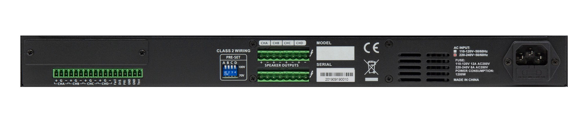 功率輸出(70/100V):4X150W / 4X300W / 4X600W;