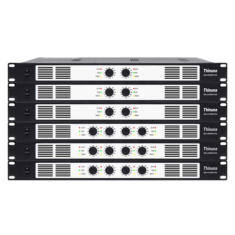 DA系列專(zhuān)業(yè)功率放大器是D類(lèi)安裝放大器。它適用于兩種70 / 100V線(xiàn)路安裝(通過(guò)撥碼開(kāi)關(guān)可選)。每個(gè)通道都有音量控制和LED指示燈(信號(hào),削波和保護(hù))。輸入和輸出連接通過(guò)歐式接線(xiàn)端子進(jìn)行。它的1U機(jī)箱高度和19英寸尺寸非常適合多種類(lèi)型的安裝,并利用了多通道設(shè)計(jì)。