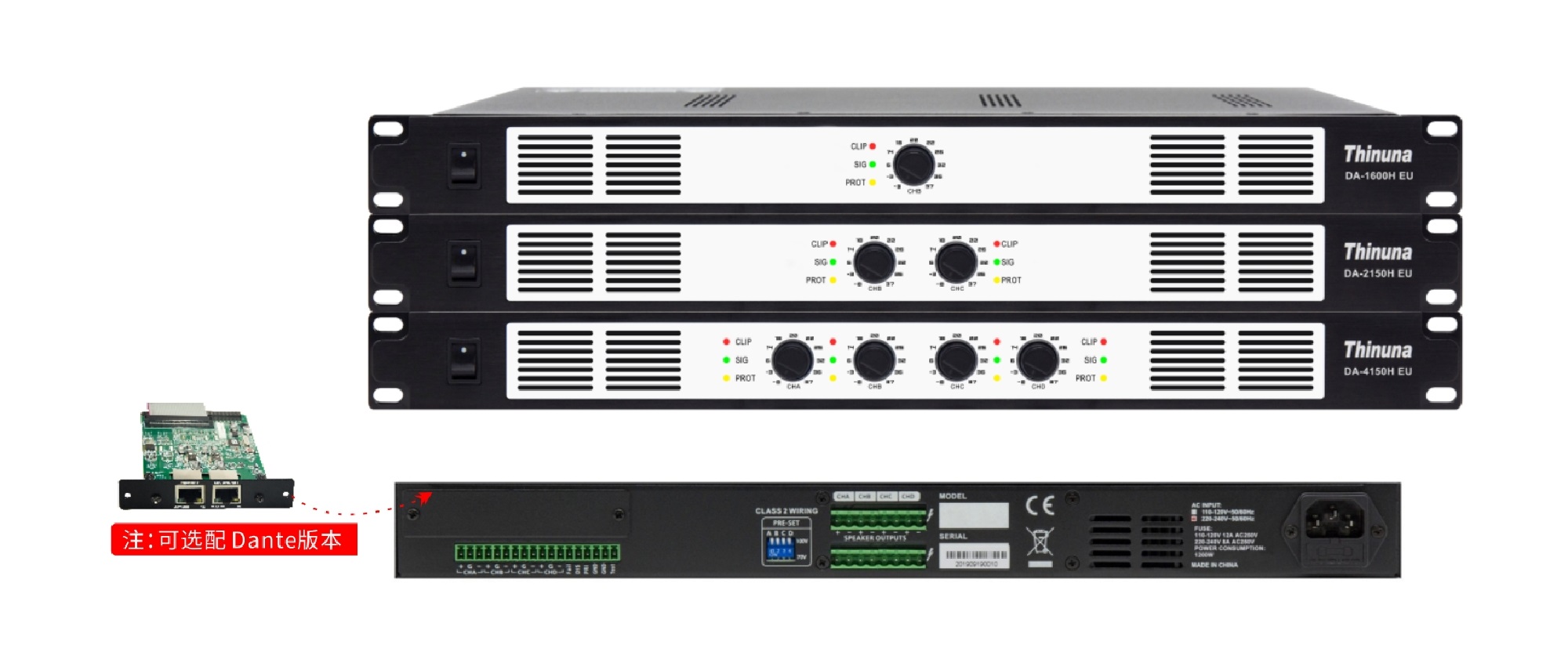 輸出功率(100V線(xiàn)路) : 150W*4(DA-4150H EU) / 300W*4(DA-4300H EU) / 600W*4(DA-4600H EU)