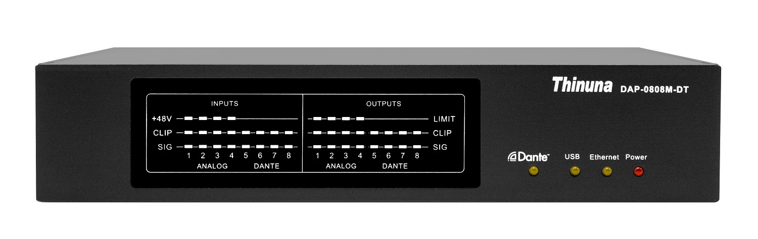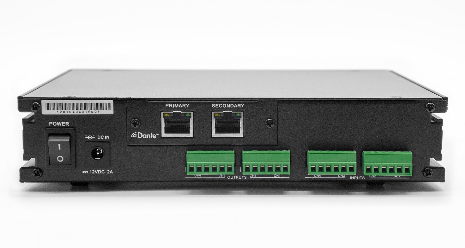 具有4路本地輸入和4路本地輸出通道,同時還具有4路輸入和4路輸出的Dante標(biāo)準(zhǔn)數(shù)字網(wǎng)絡(luò)音頻通道,其中Dante通道和模擬通道的資源可共享,可通過切換通道來實(shí)現(xiàn)。