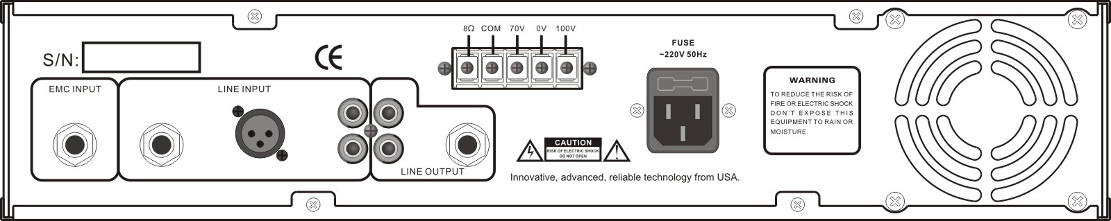 100V,70V定壓輸出及8Ω定阻輸出(平衡不接地)適合不同的應用場合;