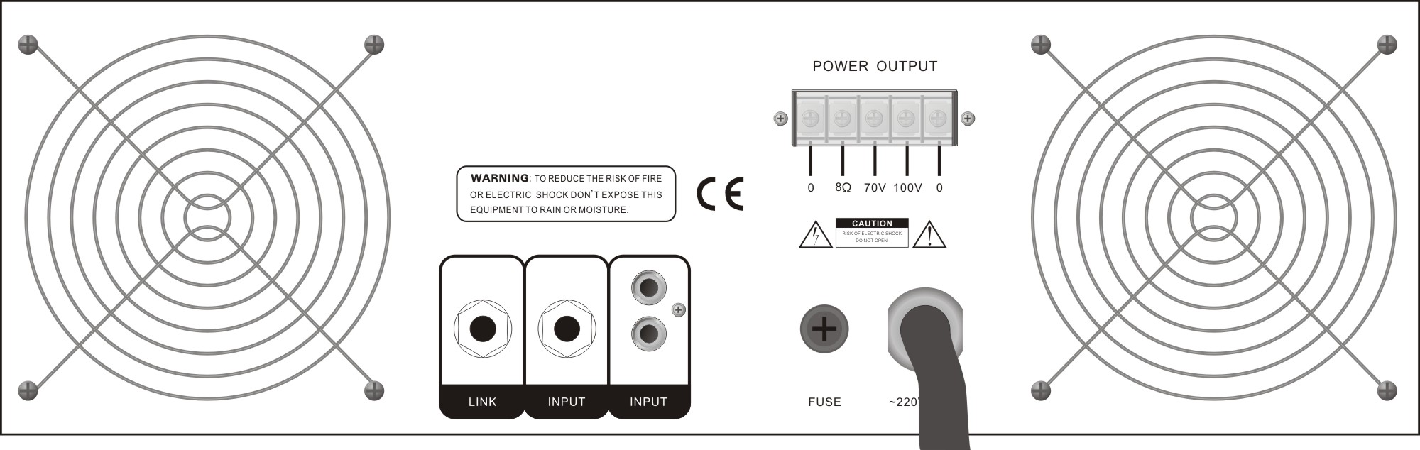 喇叭輸出: 高阻抗:100V,70V; 低阻抗:4~16Ω;M4螺絲端子;