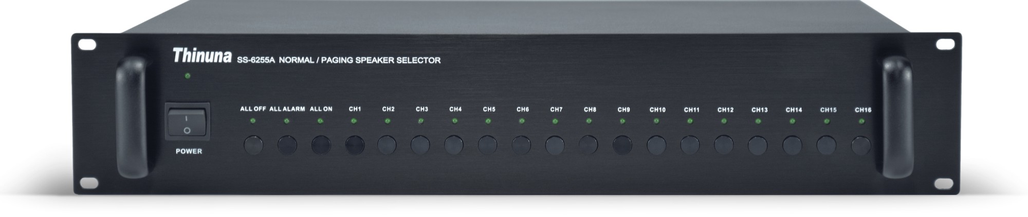 16分區(qū)選擇LED燈直觀顯示: "直接分區(qū)"模式下: 打開(kāi)背景音樂(lè)功放對(duì)應(yīng)的分區(qū)指示燈點(diǎn)亮(常亮);