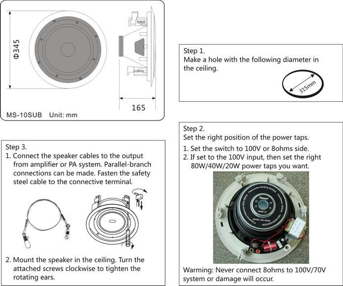 其準確設計的分頻器令低音相比其它產(chǎn)品更加厚實和干凈,功率強勁的10寸低音單元毫不遜色于專業(yè)音響。選擇這款天花音箱可以讓MS系列的娛樂性能更加出色,達到多功能的天花擴聲系統(tǒng)設計。