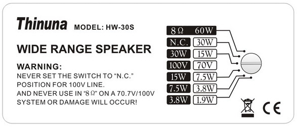 內(nèi)置100V/70V匹配變壓器并提供多檔功率選擇