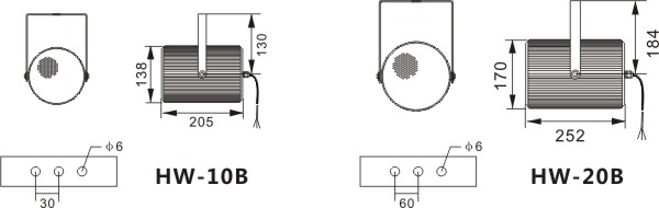 功率選擇 | 100V: 10 W, 5 W, 2.5W | 100V: 20 W, 10 W, 5W |